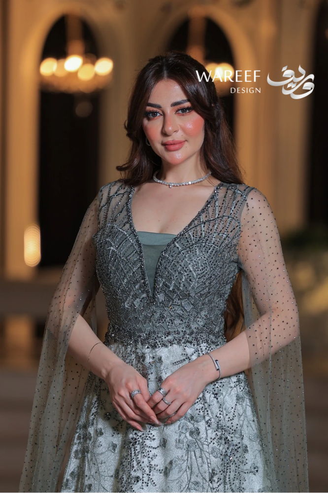 تخيلي أن ترتدي فستاناً يحمل في طياته انتعاش الطبيعة وبريق الفجر. يقدم لكِ وريف فاشن هذه القطعة الحالمة، فستان باللون الأخضر الفاتح، حيث يتراقص التطريز الفضي على الأكمام الشفافة كالقطرات المتلألئة، ليخلق إطلالة تفيض بالحياة والرقي.