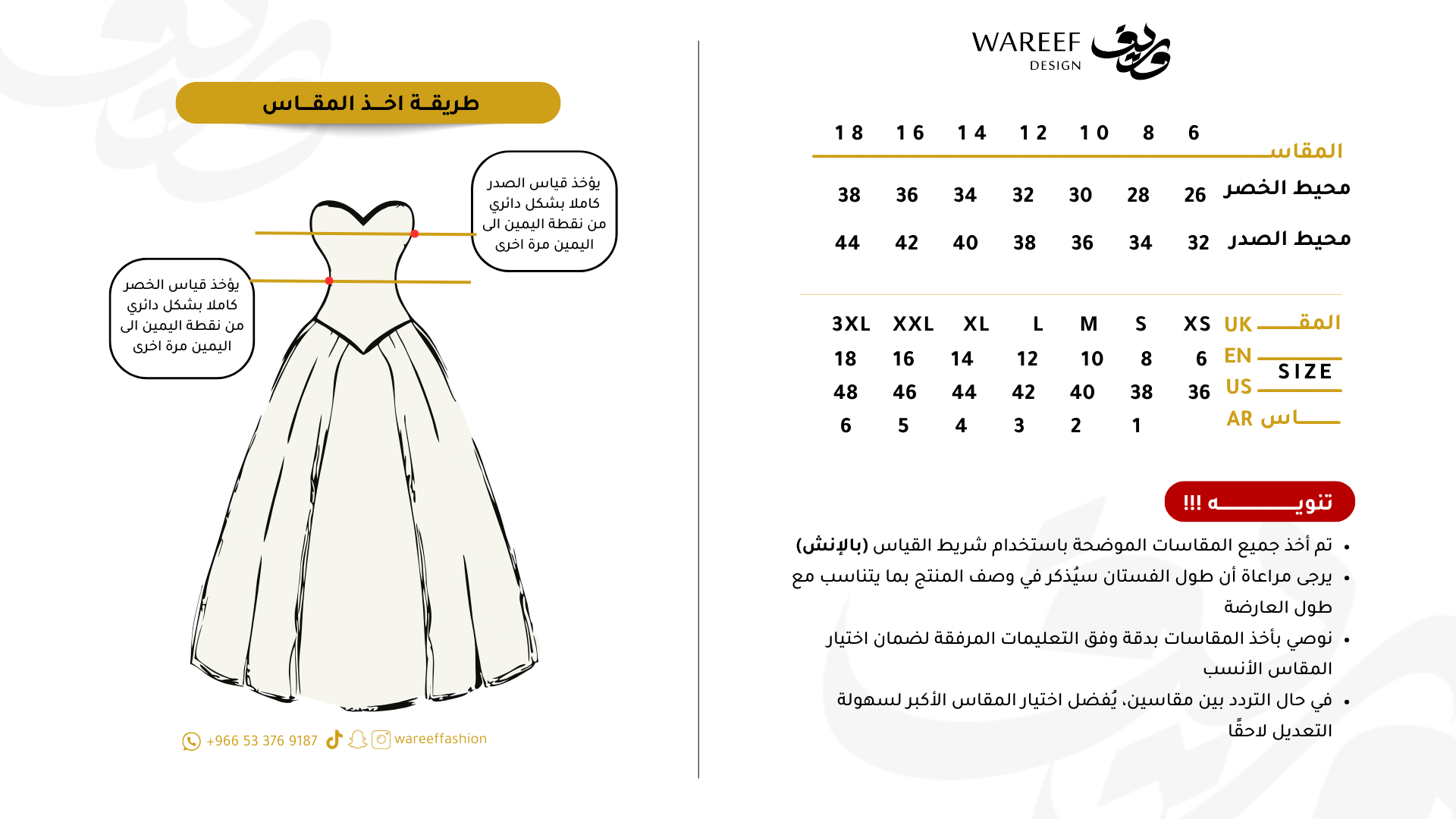 المقاسات المتوفرة وكيفية اخذ المقاس
