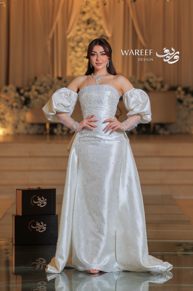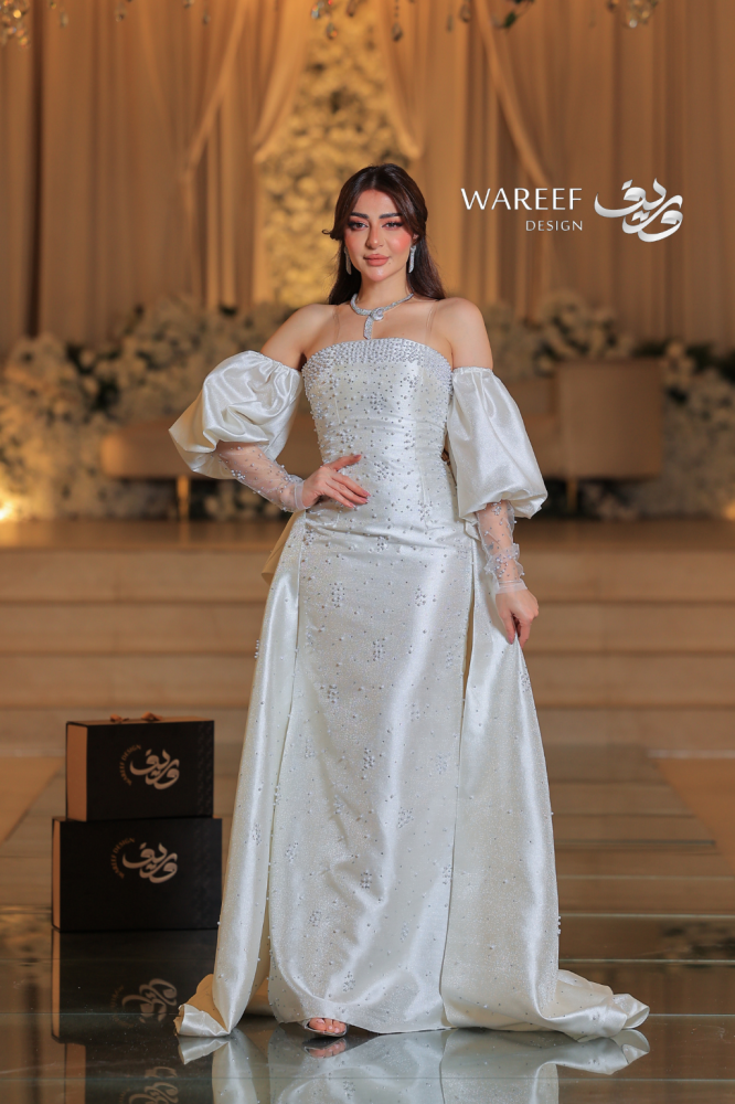 تميّزي بإطلالة فخمة وساحرة مع فستان السهرة الأبيض الذي يجمع بين الذوق الرفيع والتفاصيل الفاخرة. سواء كنتِ تبحثين عن إطلالة للخطوبة أو مناسبة خاصة، هذا الفستان هو خيارك الأمثل للأناقة الراقية.