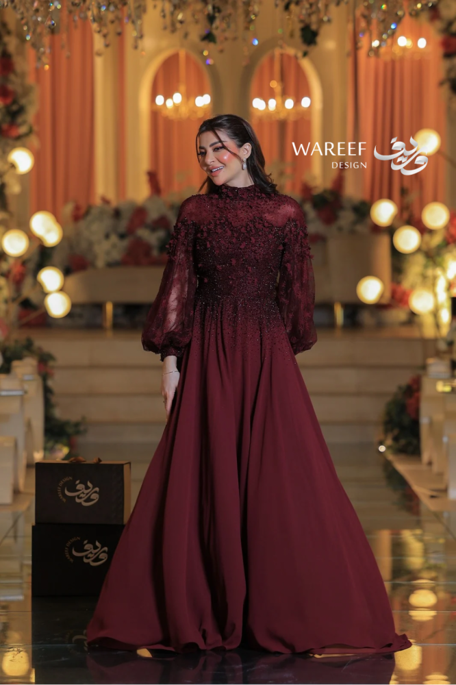 التفاصيل الراقية والتطريزات اللامعة تجعل منه قطعة مثالية لكل امرأة تبحث عن حضور استثنائي في مناسباتها الخاصة.