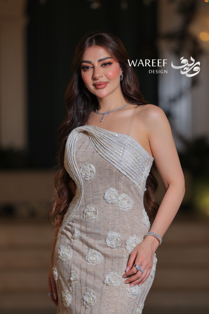 يتميّز بتصميم Mermaid (حورية) يحدّد القوام بإحساس أنثوي راقٍ، ومزخرف بورود ثلاثية الأبعاد متناثرة بأناقة على خامة الدانتيل، تضيف للفستان أبعادًا فنية جذابة.