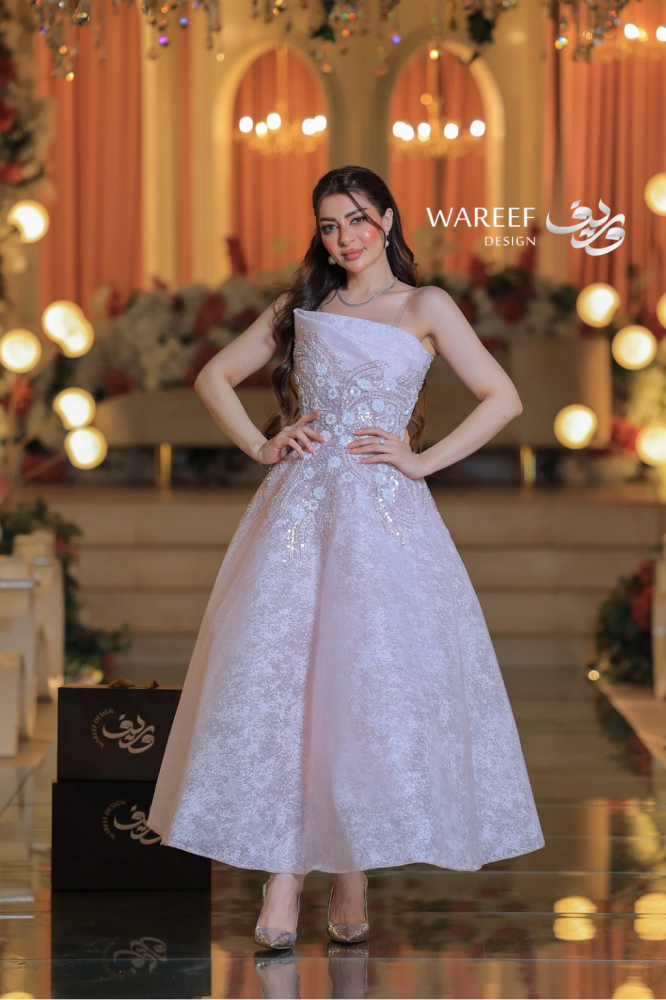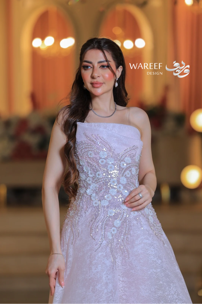 • التطريز: يزين الفستان خرز لامع على شكل زخارف هندسية تضفي إشراقة ساحرة.