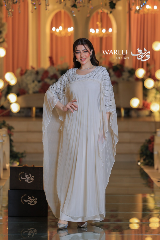 - التطريز: تطريز يدوي دقيق بالخرز اللامع ليمنح الفستان بريقًا مميزًا.