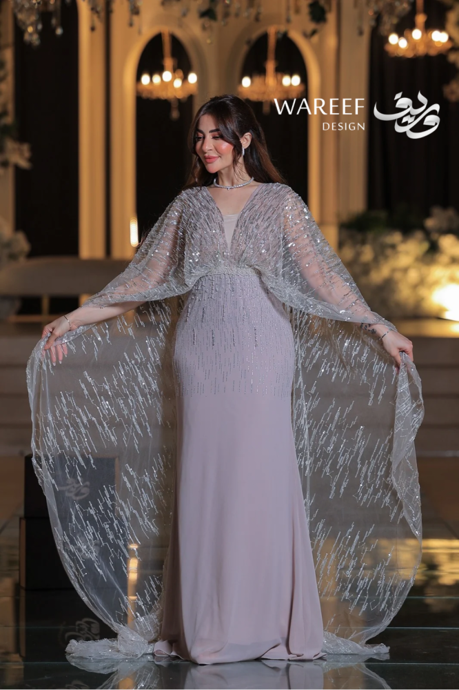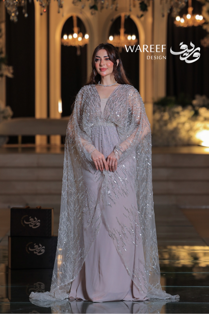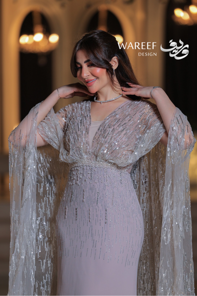 تخيلي إطلالة تنسجها خيوط الضوء، حيث يمتزج اللون اللحمي الهادئ مع بريق الفضة الخاطف. يقدم لكِ وريف فاشن فستاناً لا يشبه سواه، قطعة صُممت لتروي قصة عن الأناقة الهادئة والفخامة التي تكمن في أدق التفاصيل، لتكوني نجمة أمسيتكِ بلا منازع.