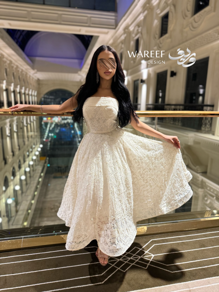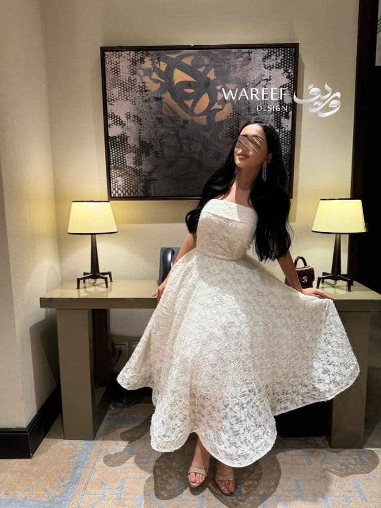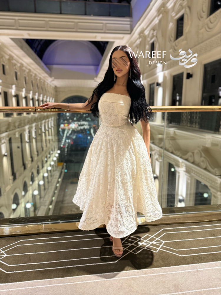 يقدّم لكِ وريف فاشن هذا الفستان العاجي الميدي المصنوع من الدانتيل الفاخر والمبطّن بالساتان الحريري، ليمنحكِ توازنًا رائعًا بين البساطة والفخامة. تصميمه المستوحى من اللمسات الكلاسيكية يجعل منه خيارًا مثاليًا لحفلات المساء والمناسبات الخاصة التي تتطلّب أناقة هادئة وراقية.