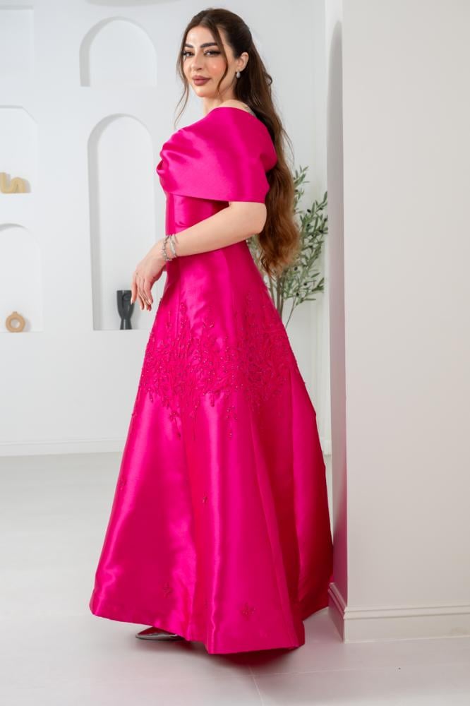 هذا الفستان الوردي هو رمز للأنوثة والرقة، يجسد جمال الألوان الناعمة ويضفي لمسة من الحيوية على إطلالتك. مصنوع من قماش خفيف ومرن مثل الشيفون أو الحرير، يتميز بتصميمه الذي ينساب برفق على الجسم.