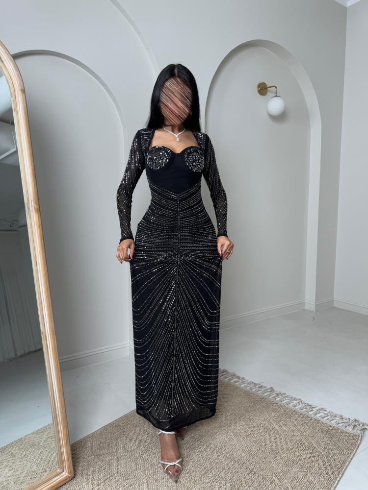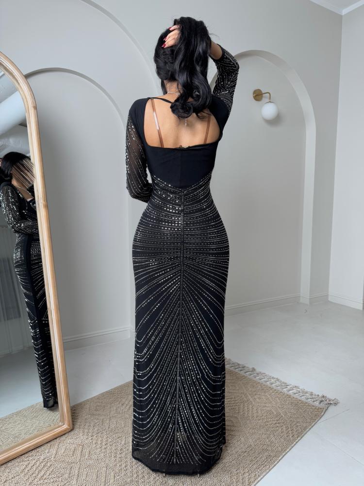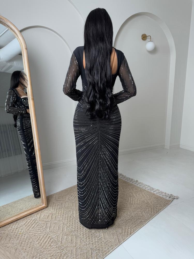 فستان سهرة ناعم مزين بتطريز الفصوص