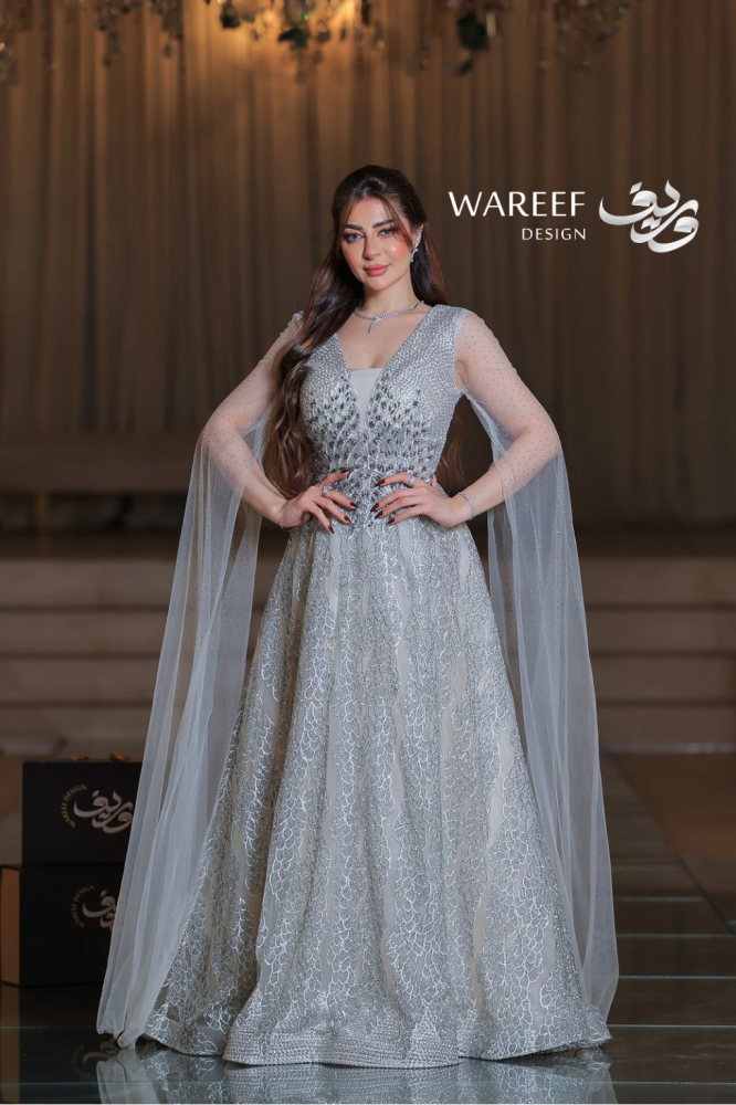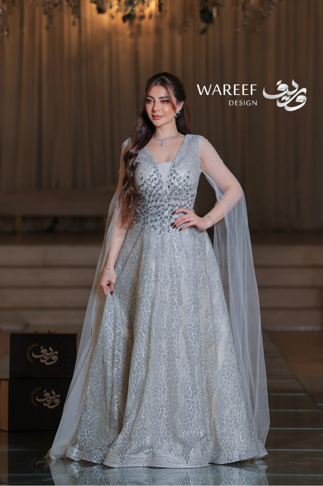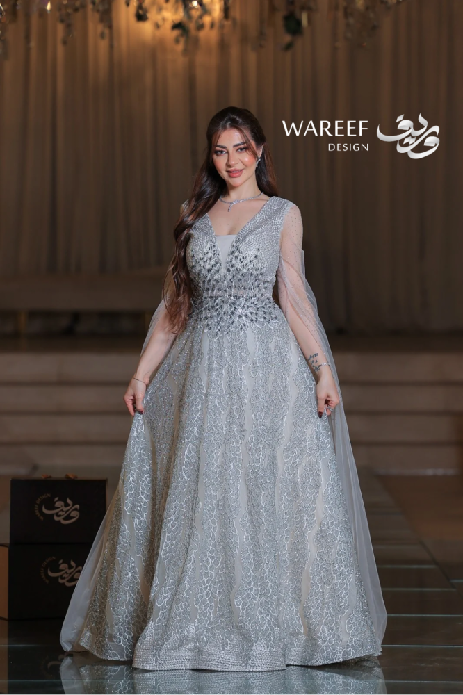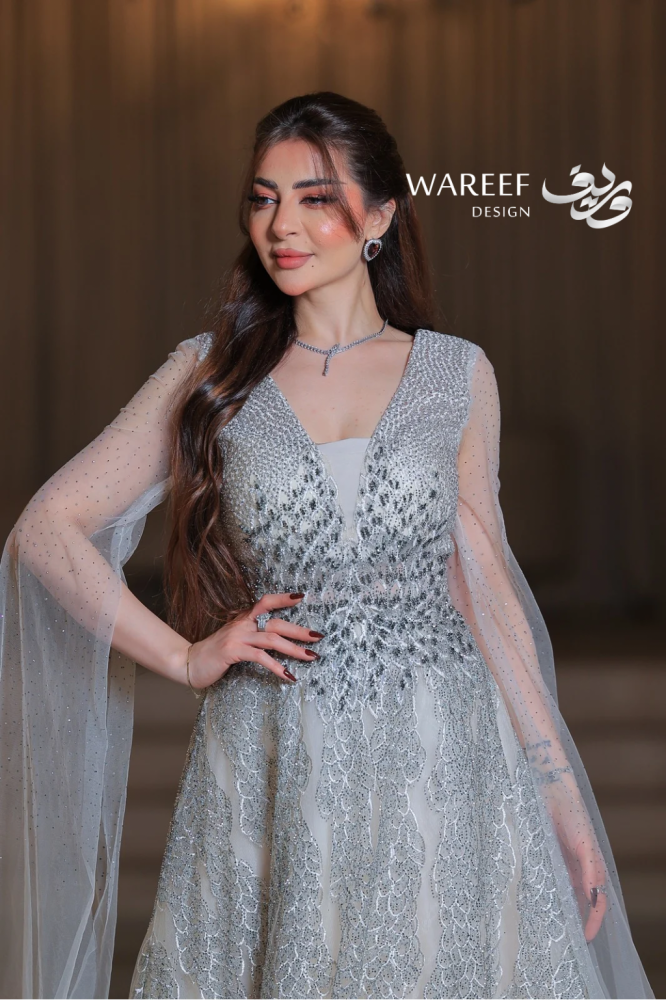 هل أنتِ مستعدة لتخطفي الأضواء بإطلالة تجمع بين الفخامة العصرية والنعومة الساحرة؟ نقدم لكِ هذا الفستان الفضي اللامع، المصمم خصيصاً ليمنحكِ حضوراً استثنائياً ويجعلكِ نجمة المساء. قطعة فنية تجسد الرقي في كل تفاصيلها.