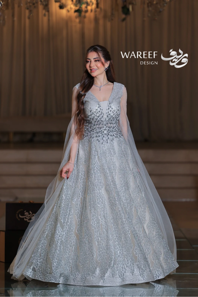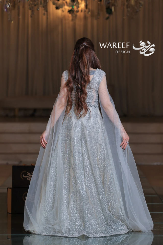 • إطلالة ملكية فاخرة: تصميم أكمام الكاب الطويلة مع قماش الدانتيل المطرز يمنحكِ مظهراً ملكياً لا يُقاوم، مثالياً لحفلات الزفاف والسهرات الكبرى.