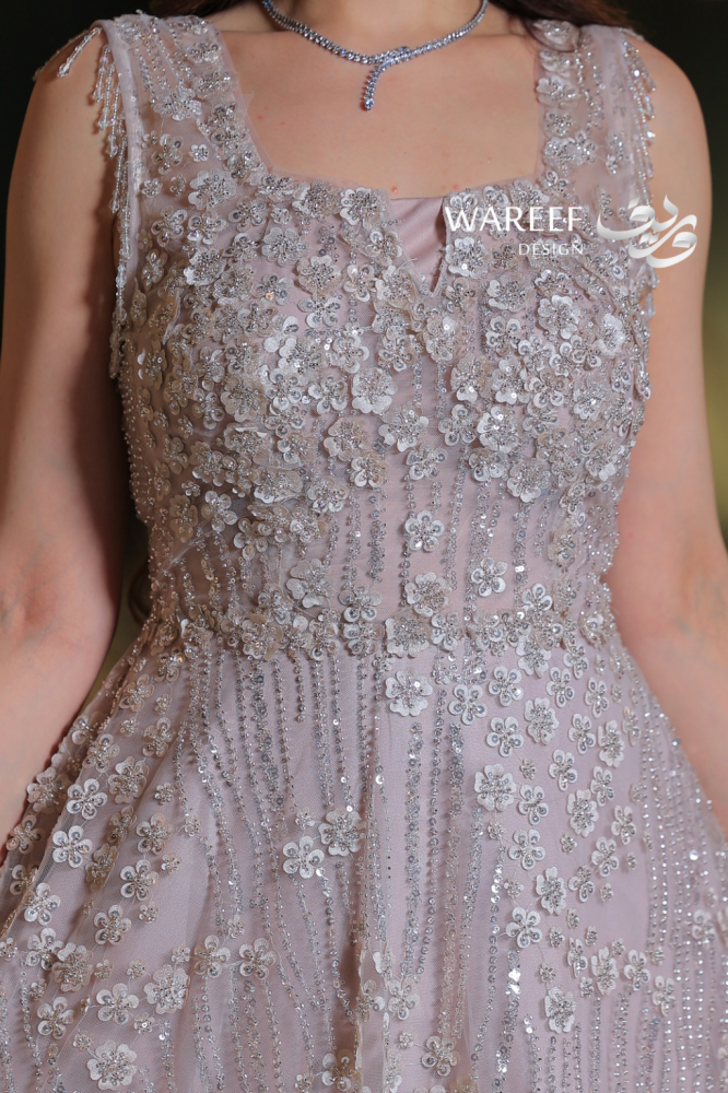 هذا الفستان من وريف فاشن ليس مجرد قطعة ملابس، بل هو حلم منسوج بلون اللافندر الهادئ. تصميم يجسد الرومانسية في أبهى صورها، حيث تتفتح الأزهار ثلاثية الأبعاد وسط وميض الكريستال، ليخلق إطلالة أسطورية تليق بالمرأة التي تعشق التفاصيل الفنية والجمال الذي لا يُنسى.
