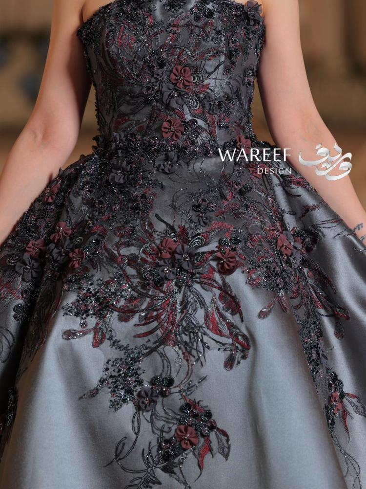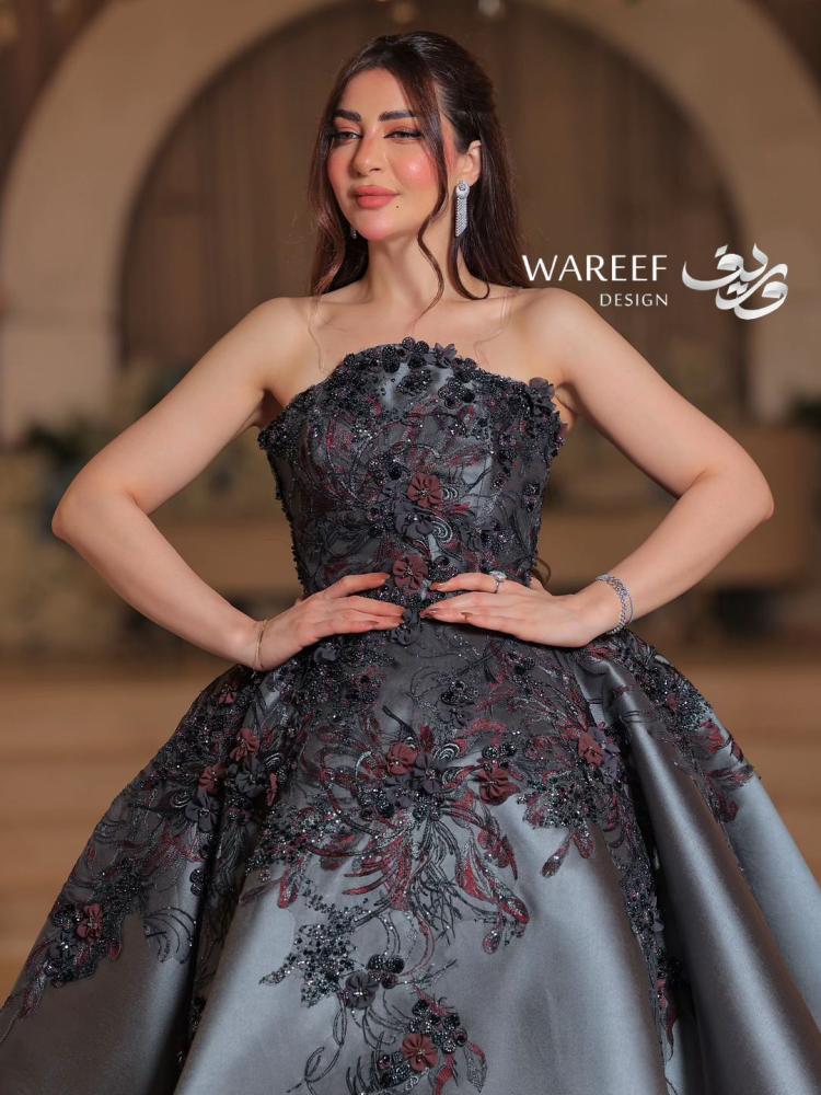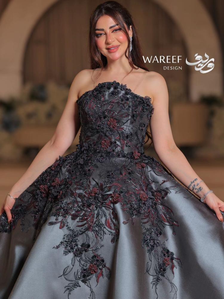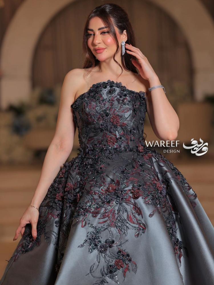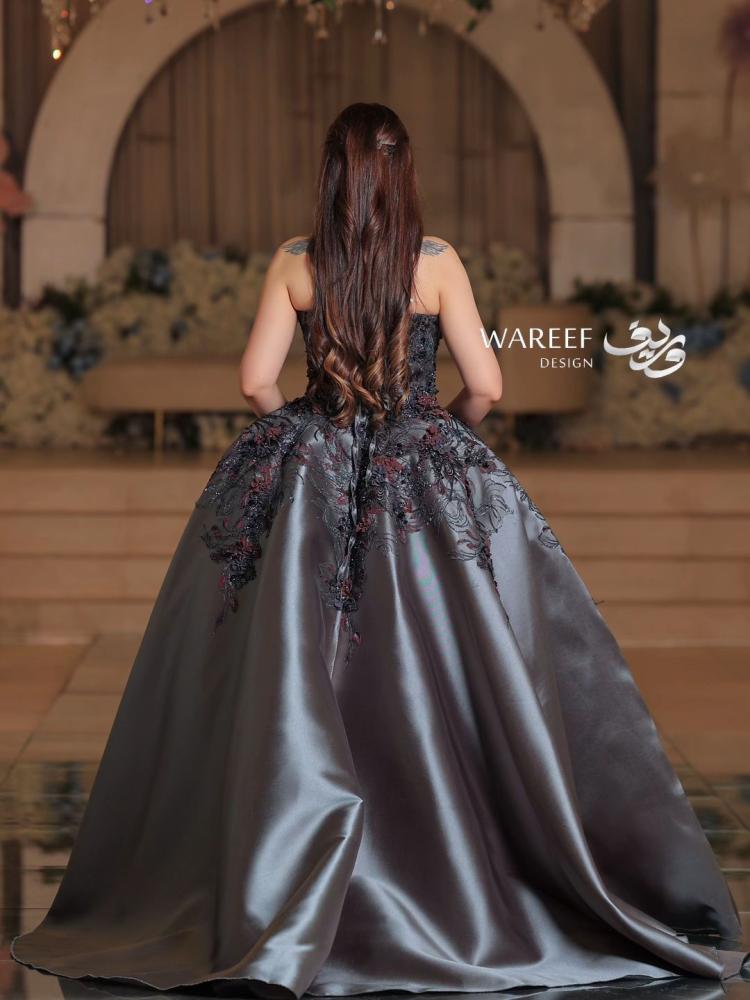 فستان ملكه فخم بتصميم فريد باللون الرمادي الغامق