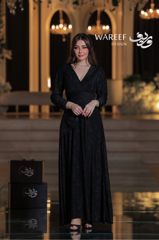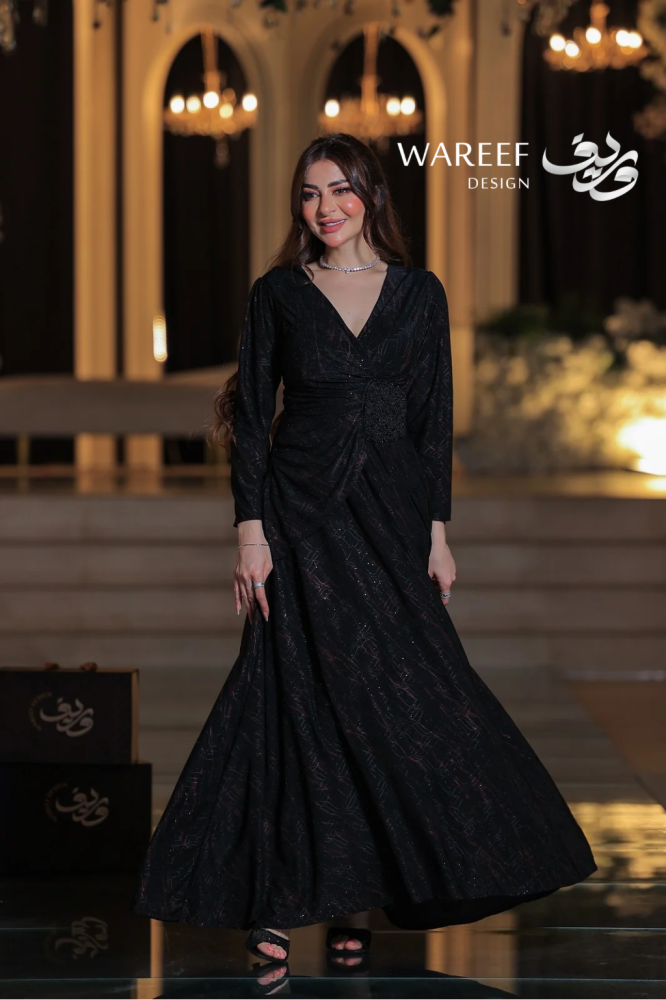 هل تبحثين عن فستان يجمع بين سحر اللون الأسود الخالد ولمسة من البريق الفاخر؟ يقدم لكِ وريف فاشن هذا التصميم الراقي، الذي يجسد الأناقة الكلاسيكية من خلال قصته البسيطة وتفاصيله الدقيقة التي تمنحكِ إطلالة ساحرة في كل المناسبات.