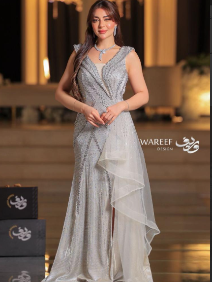 تألقي بإطلالة ساحرة تجمع بين الفخامة والعصرية مع هذا الفستان الفضي الرائع الذي يُعد خيارًا مثاليًا للسهرات والمناسبات الخاصة، ليمنحك حضورًا مميزًا لا يُنسى.