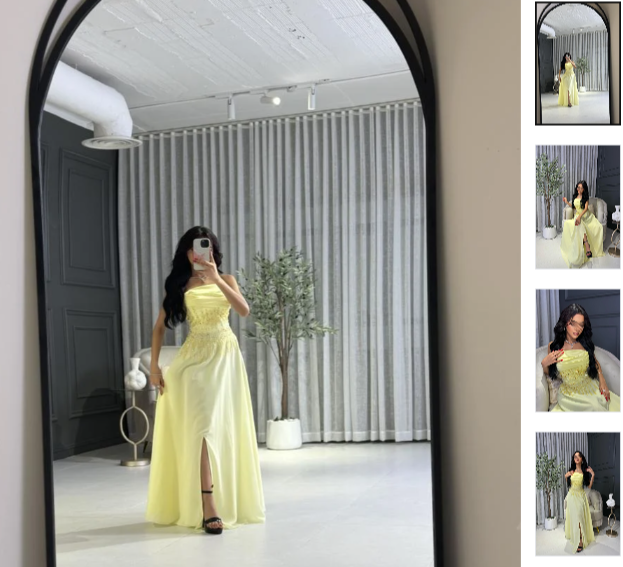 • إذا كان الفستان بلون واحد، أضيفي لمسة لونية عبر الاكسسوارات، واختاري تدرجات ناعمة أو لمسات معدنية (فضي، ذهبي) حسب ذوقك والمناسبة.